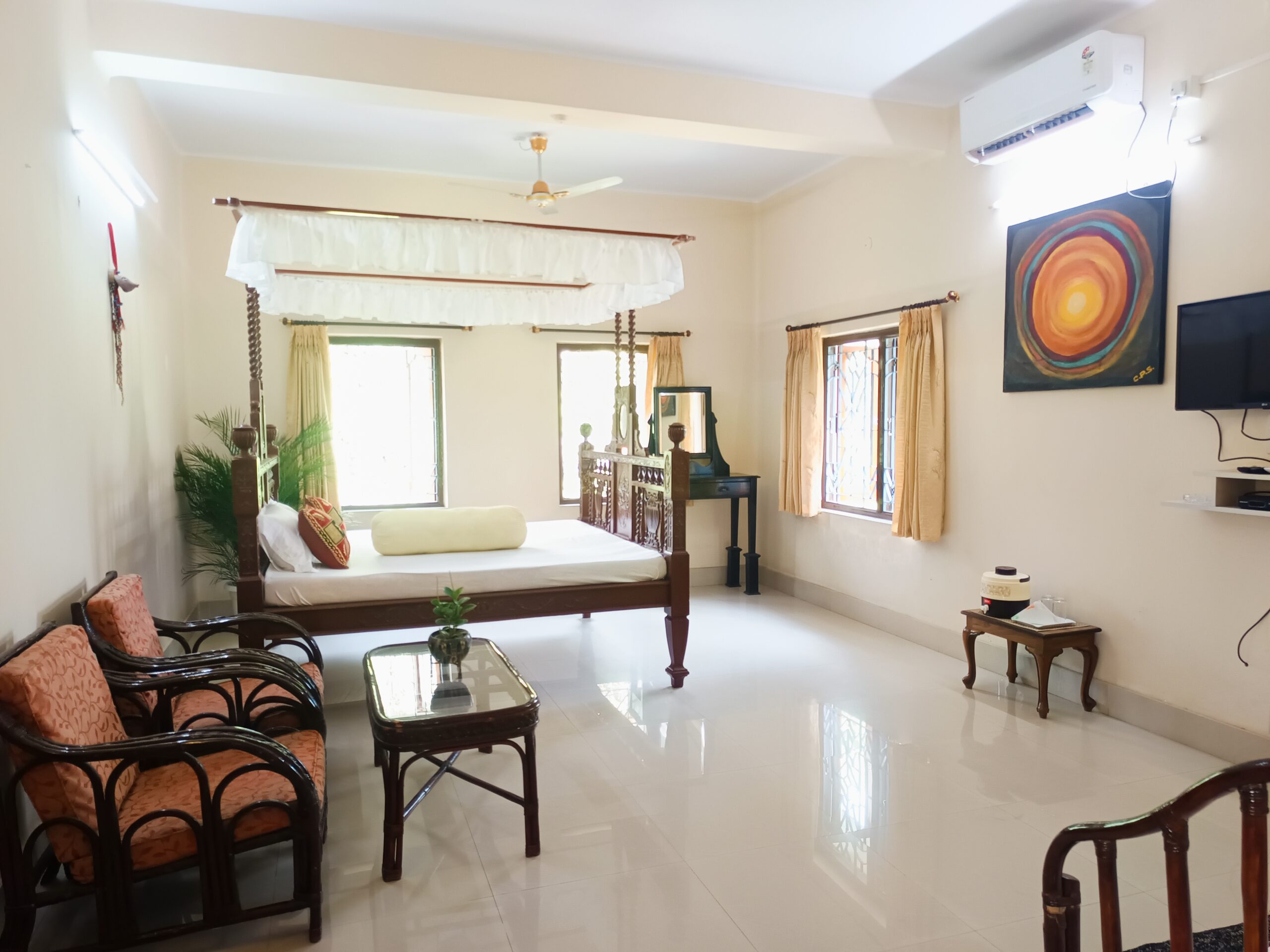 A peaceful retreat nestled in the scenic beauty of Bawali, just an hour from Kolkata. Surrounded by lush greenery, a tranquil fishing pond, and open gardens, it’s the perfect spot to escape the hustle of city life.